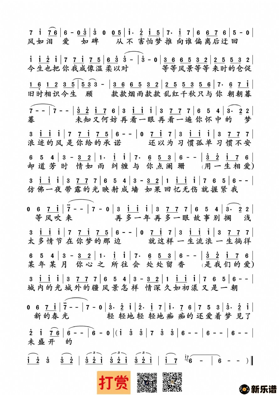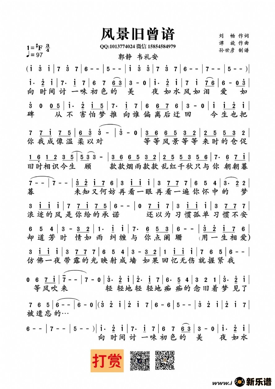 《风景旧曾谙》最新曲谱 郭静/韦礼安-孙世彦制谱