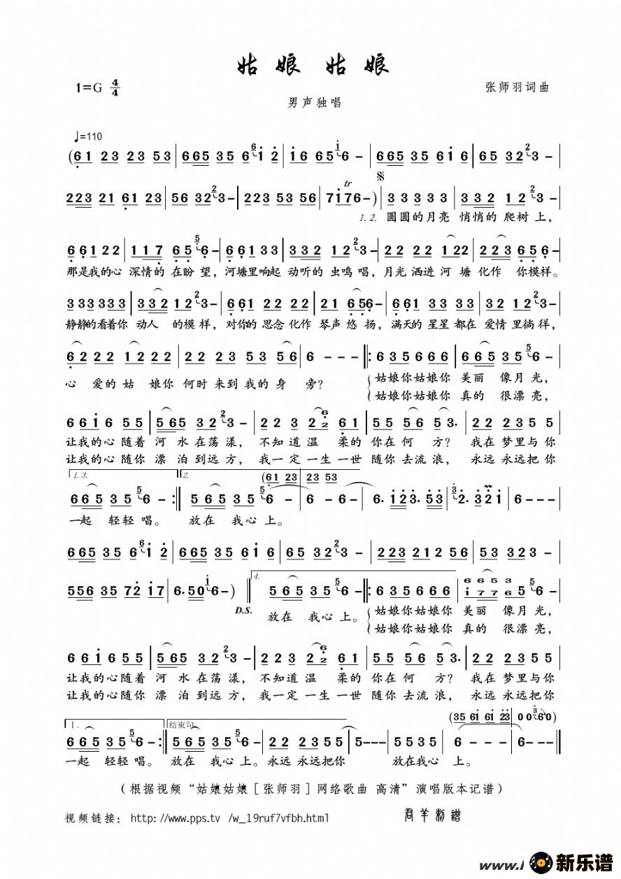 《姑娘 姑娘》最新曲谱 张师羽-君羊制谱