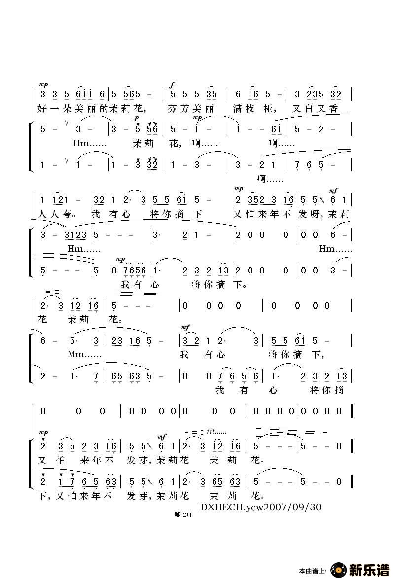 洞箫横吹组合演唱的茉莉花歌词,茉莉花最新曲谱.