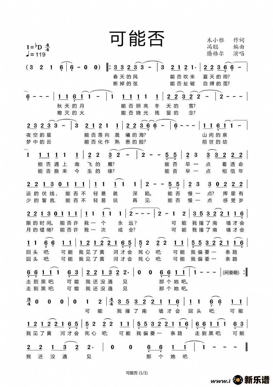 可能否最新曲谱