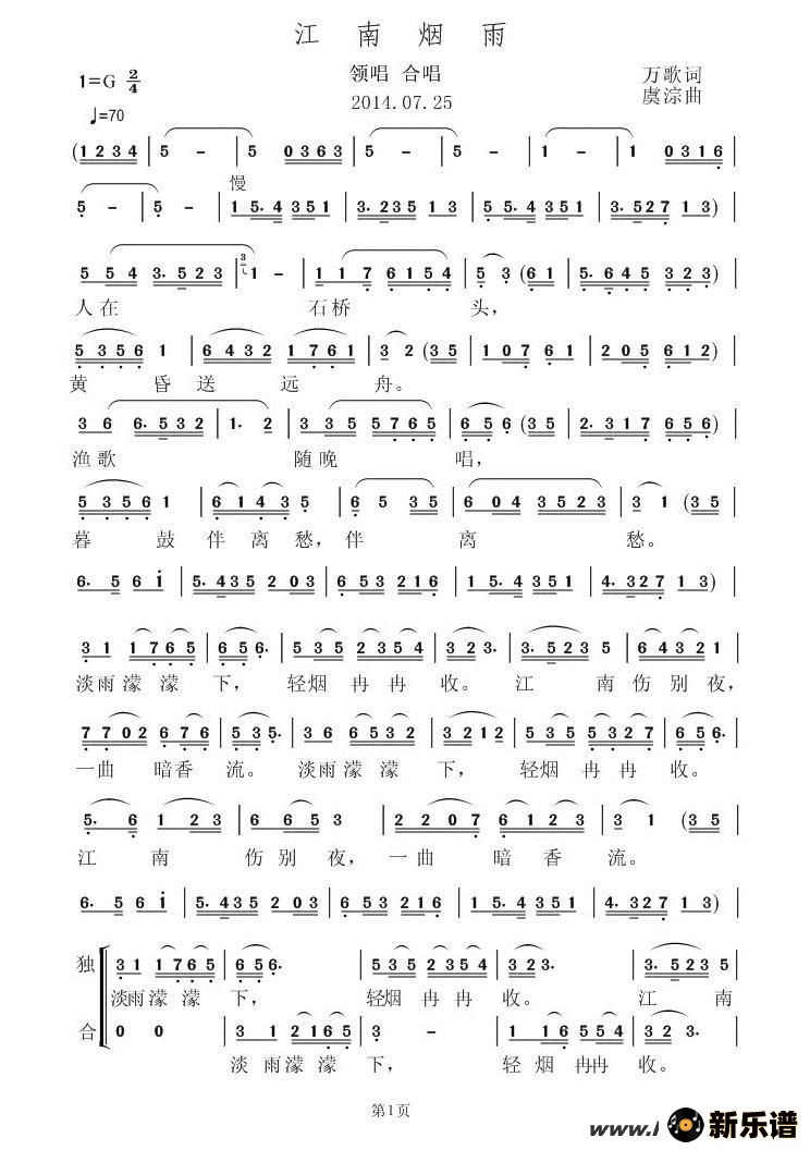 > 江南烟雨最新曲谱