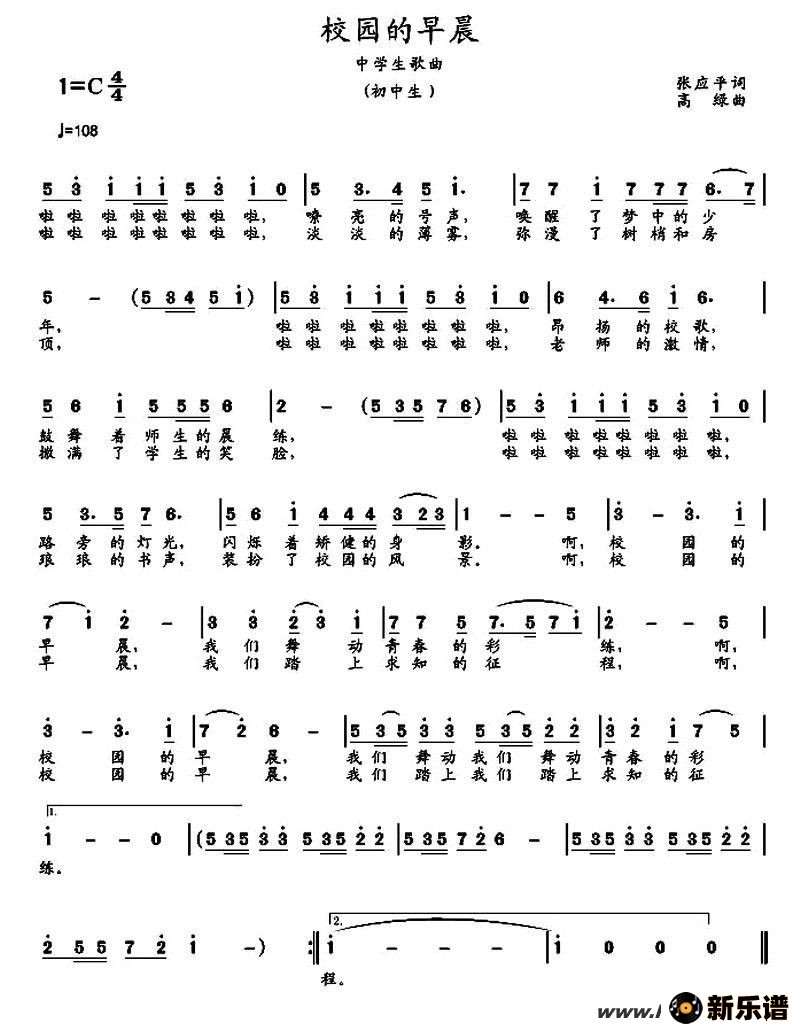 任华演唱的校园的早晨歌词,校园的早晨最新曲谱.