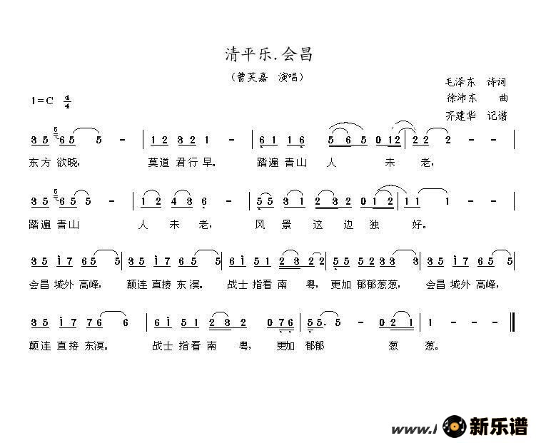 曹芙嘉演唱的清平乐.会昌歌词,清平乐.会昌最新曲谱.