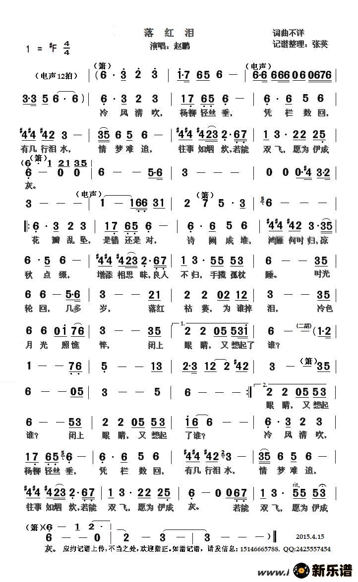 赵鹏演唱的落红泪歌词,落红泪最新曲谱.