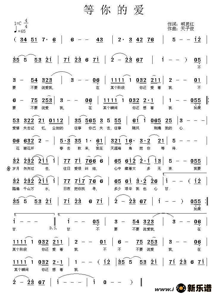 > 等你的爱最新曲谱