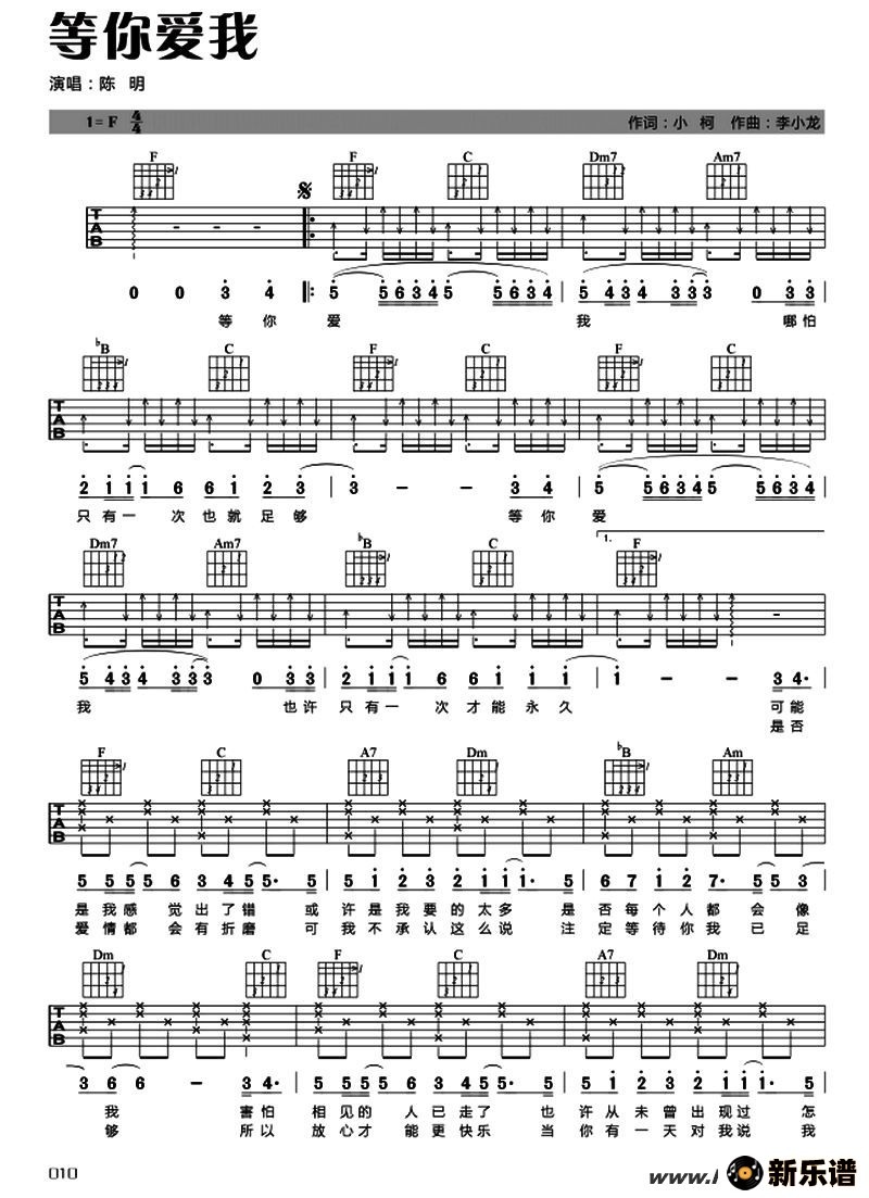 陈明演唱的等你爱我歌词,等你爱我最新曲谱.