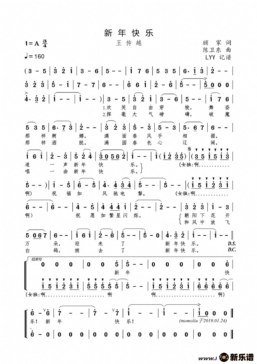 《新年快乐》最新曲谱 王传越-momoliu制谱
