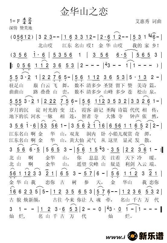 李媛媛演唱的金华山之恋歌词,金华山之恋最新曲谱.