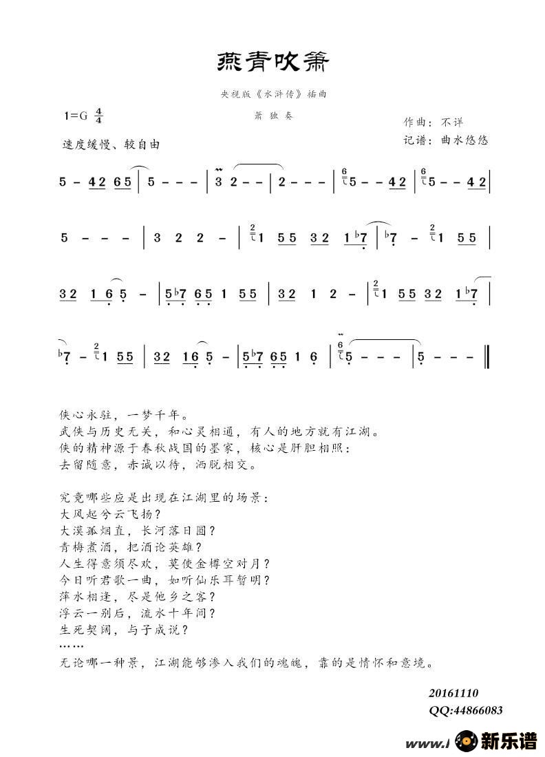 《燕青吹箫》最新曲谱 不详-曲水悠悠制谱