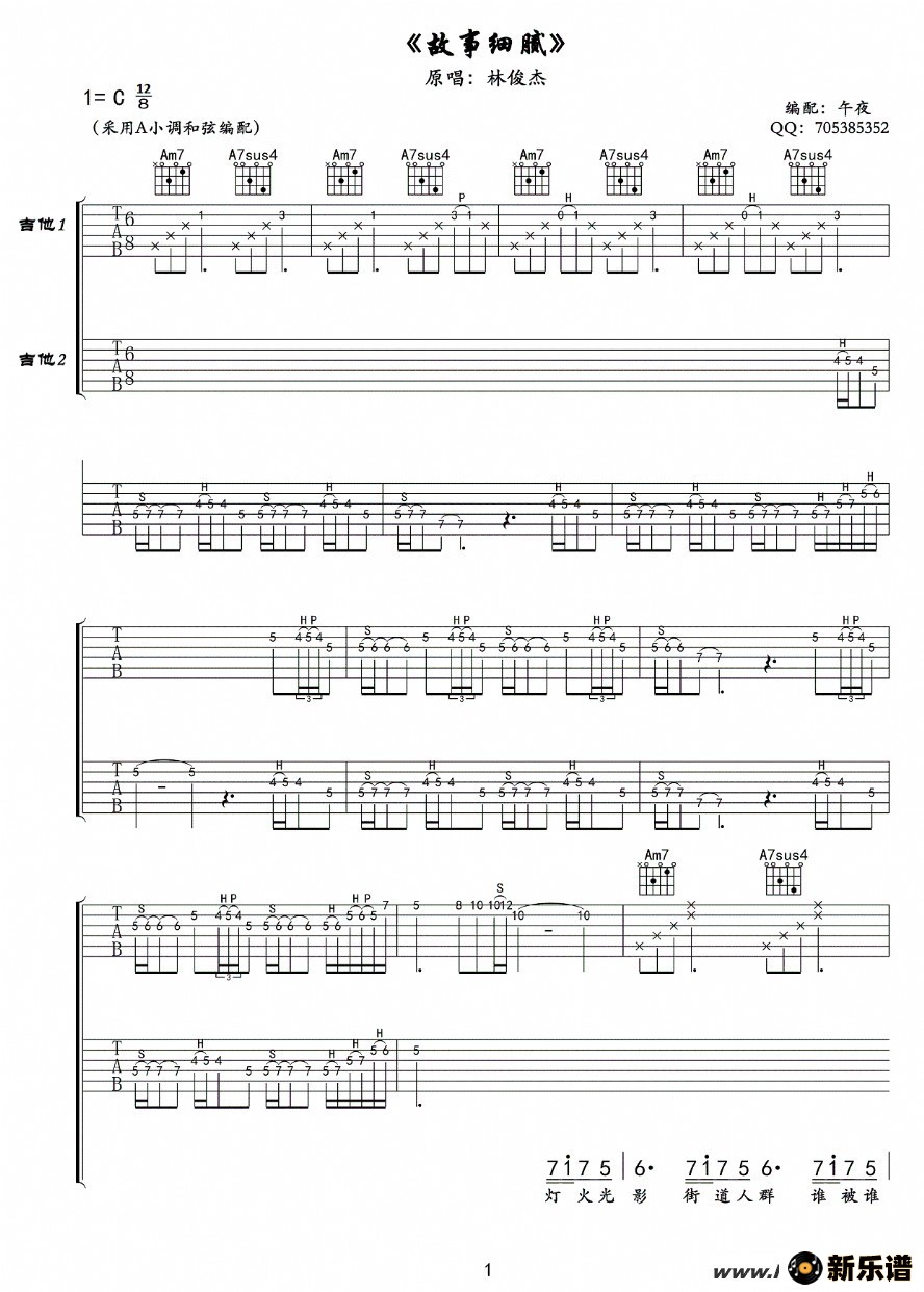 林俊杰演唱的故事细腻歌词,故事细腻最新曲谱.