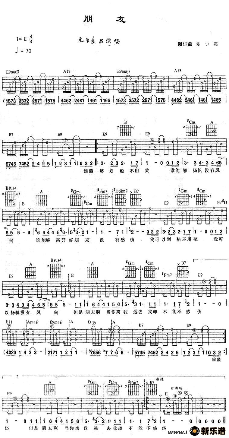 朋友最新曲谱