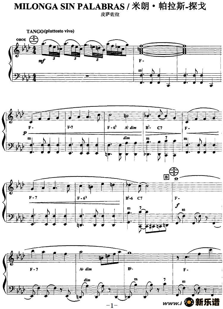 手风琴爵士乐曲:milonga sin palabras 米朗·帕拉斯-探戈皮萨佐拉 皮萨佐拉演唱的手风琴爵士乐曲:milonga sin palabras 米朗·帕拉斯-探戈歌词,手风琴爵士乐曲:milonga sin palabras 米朗·帕拉斯-探戈最新曲谱.