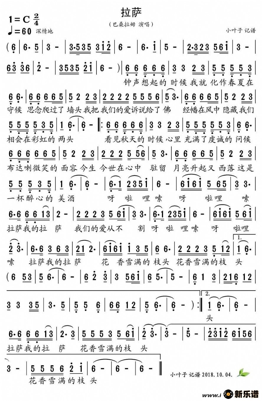《拉萨》最新曲谱 巴桑拉姆-小叶子制谱
