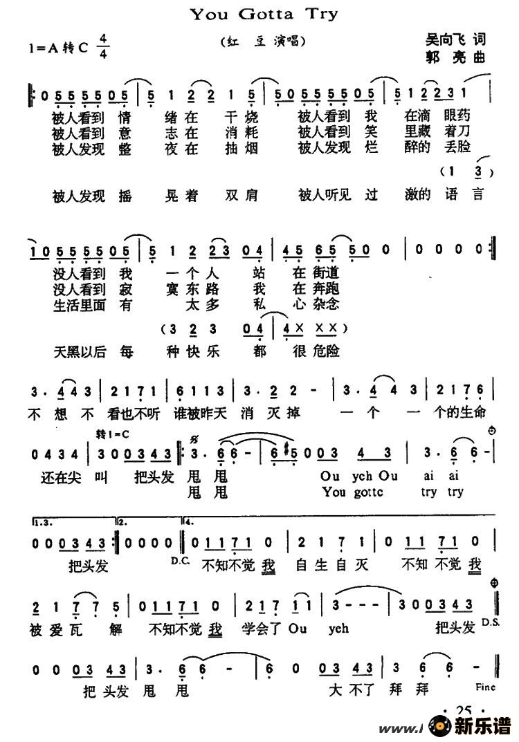 红豆演唱的you gotta try歌词,you gotta try最新曲谱.
