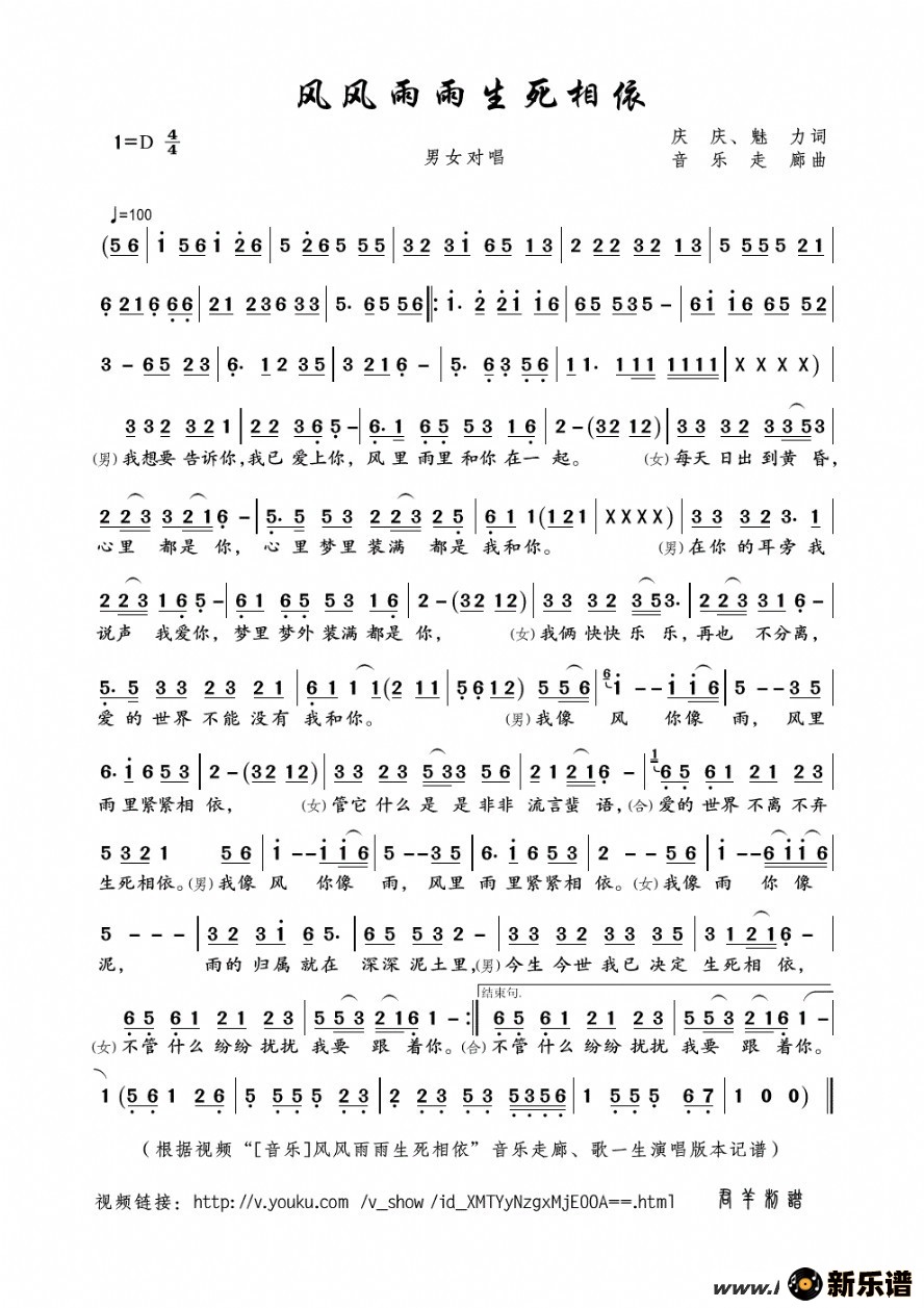 《风风雨雨生死相依》最新曲谱 音乐走廊、歌一生-君羊制谱