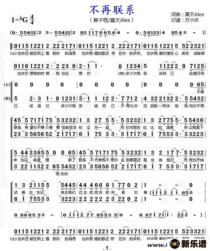 《不再联系》最新曲谱 崔子格/夏天Alex