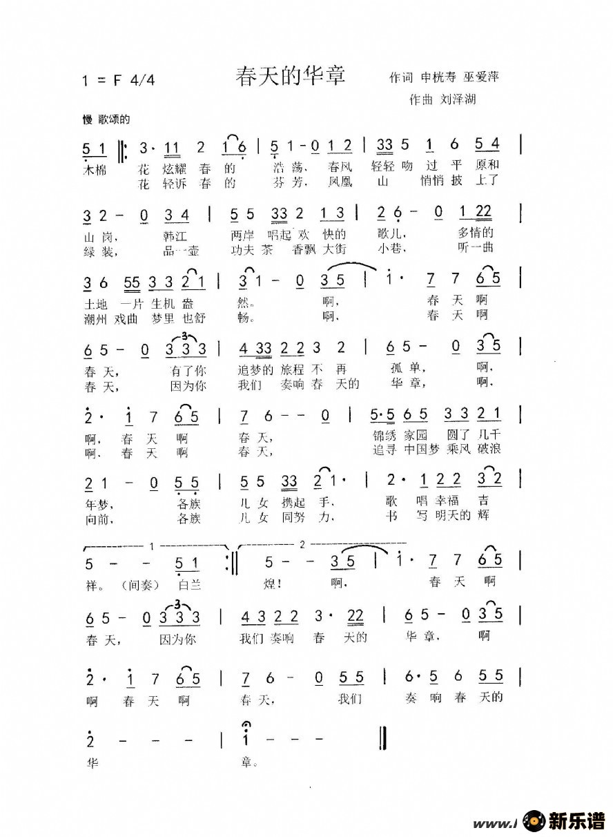 么健演唱的春天的华章歌词,春天的华章最新曲谱.