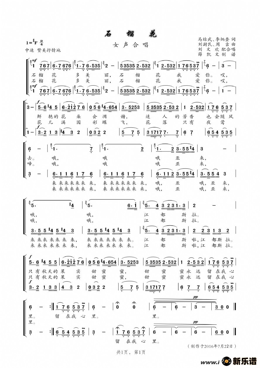 巴哈尔古丽演唱的石榴花歌词,石榴花最新曲谱.