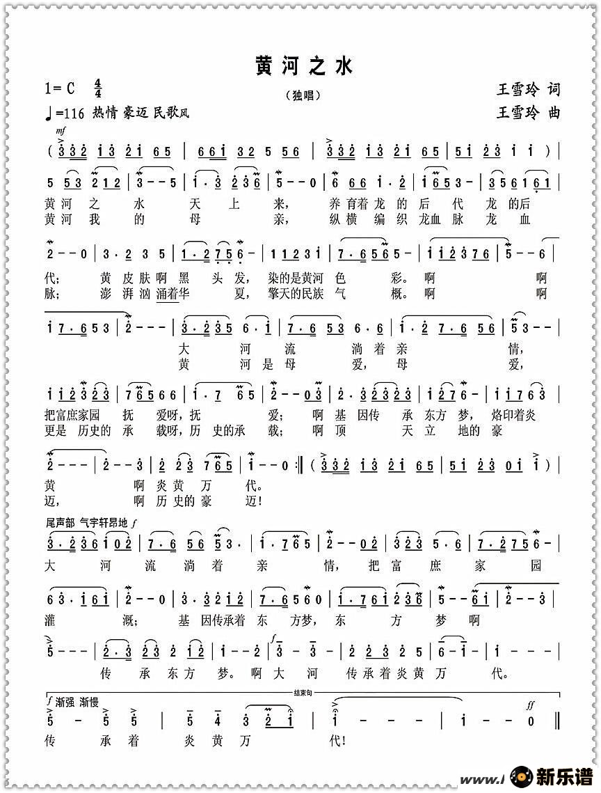 《黄河之水》最新曲谱 袁冰/雄七梅/飞翔/王雪玲