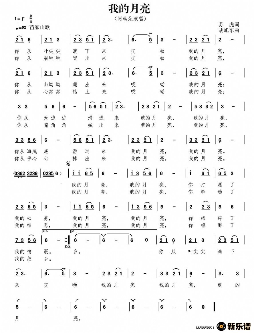 《我的月亮》最新曲谱 阿幼朵
