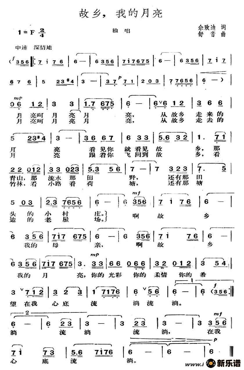 拉毛王旭演唱的故乡,我的月亮歌词,故乡,我的月亮最新曲谱.