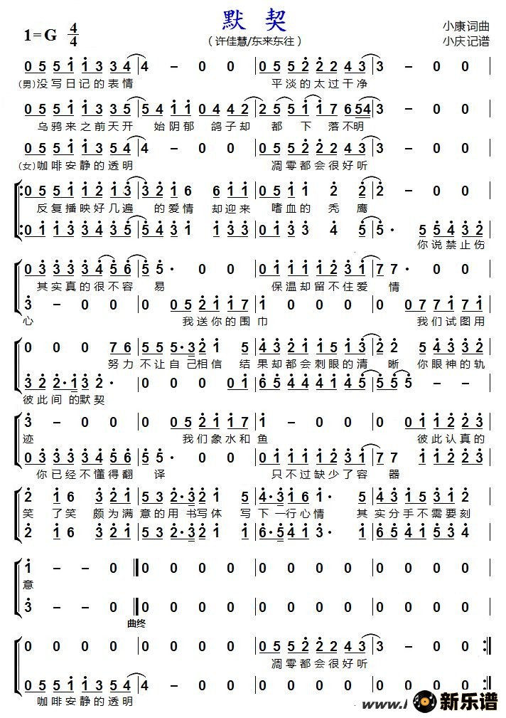 许佳慧/东来东往演唱的默契歌词,默契最新曲谱.