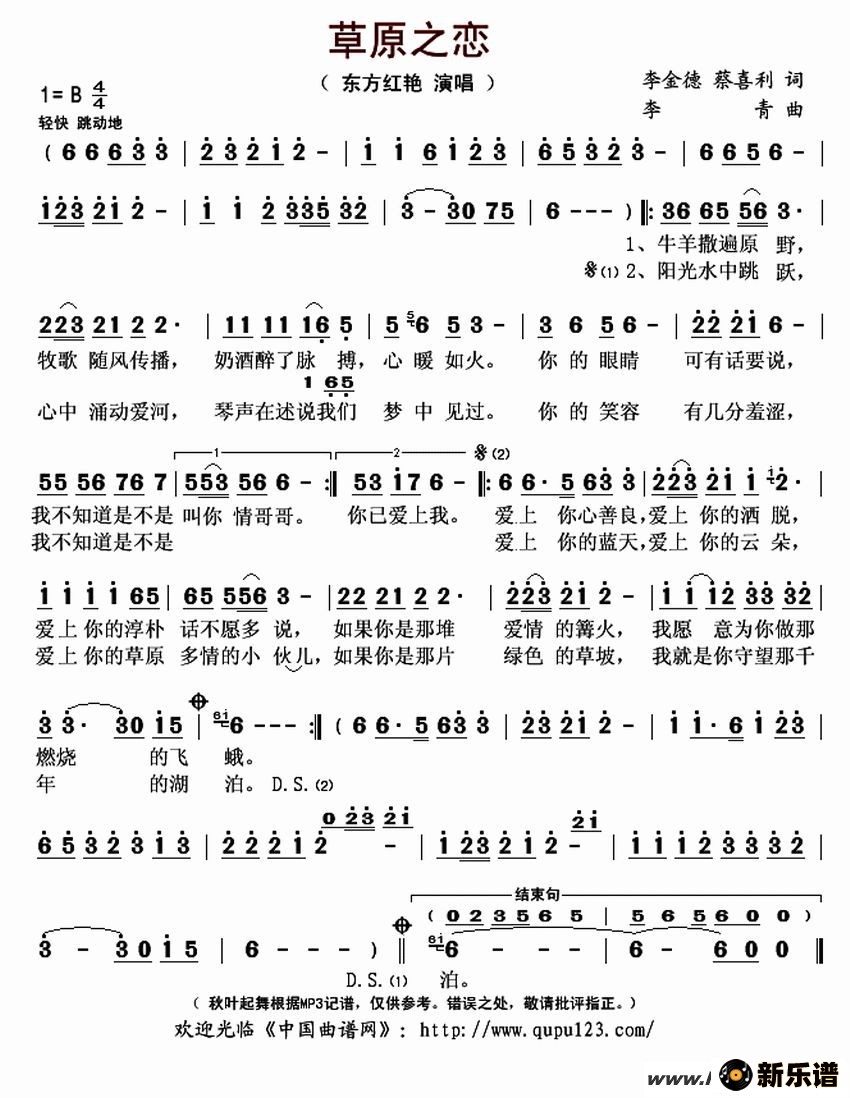 《草原之恋》最新曲谱 东方红艳-秋叶起舞制谱