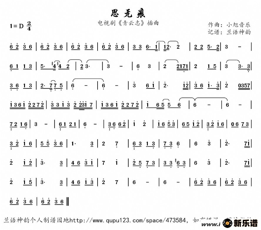 《思无痕(电视剧《青云志》插曲)》最新曲谱 -兰语神韵制谱