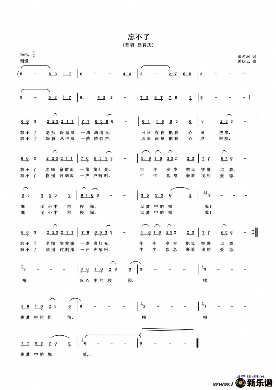 翁普庆演唱的忘不了歌词,忘不了最新曲谱.