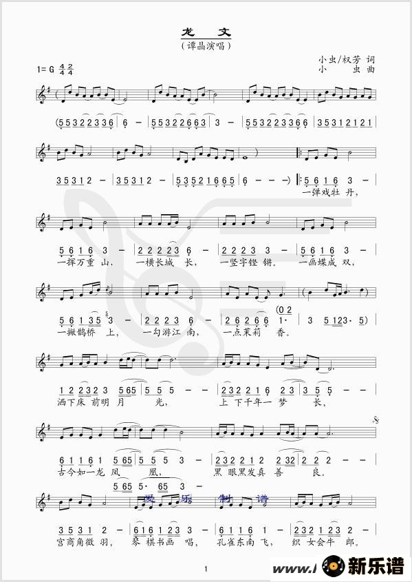 谭晶演唱的龙文歌词,龙文最新曲谱.