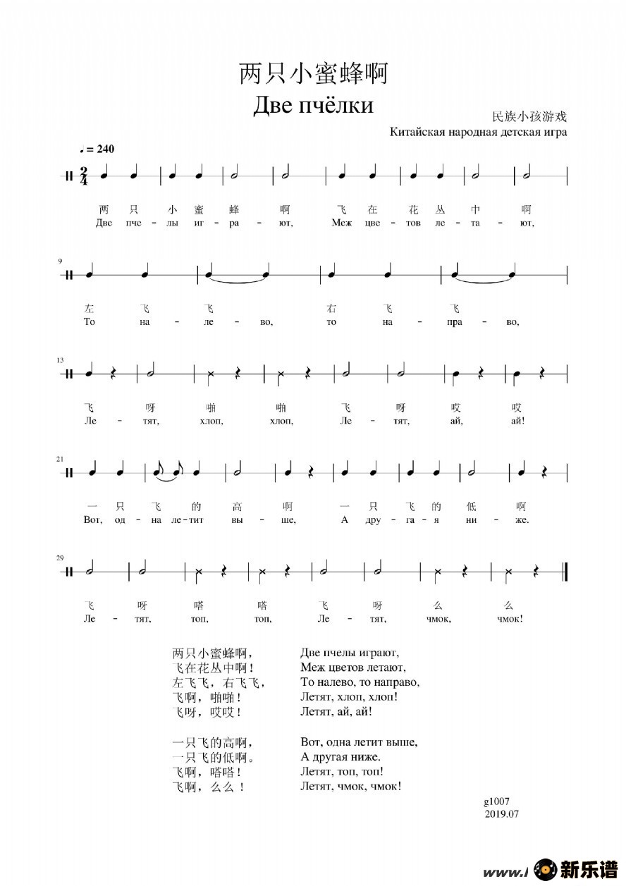 《两只小蜜蜂啊》最新曲谱 小孩游戏