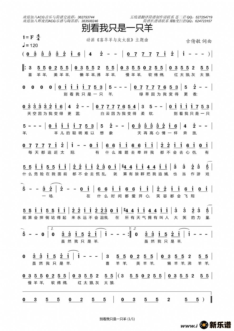 别看我只是只羊(动画《喜羊羊与灰太狼》主题曲)杨沛宜&古倩敏 杨沛宜&古倩敏演唱的别看我只是只羊(动画《喜羊羊与灰太狼》主题曲)歌词,别看我只是只羊(动画《喜羊羊与灰太狼》主题曲)最新曲谱. 此最新曲谱由新乐谱会员 苍二君 上传