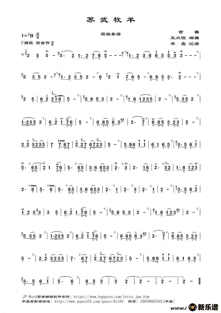作曲:古曲(埙独奏谱)