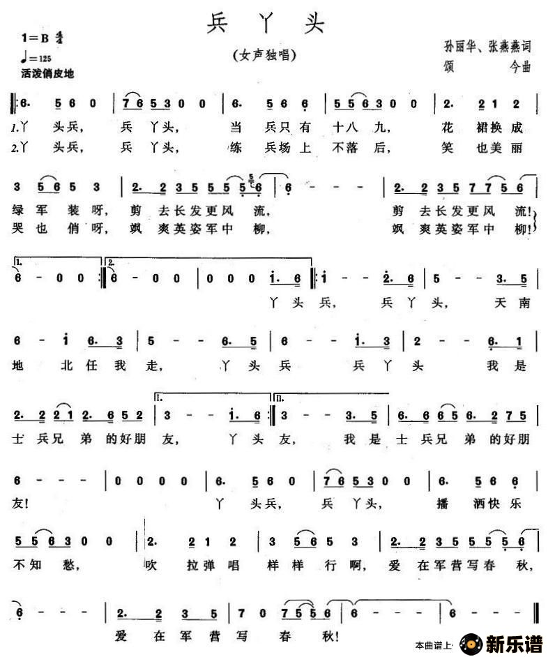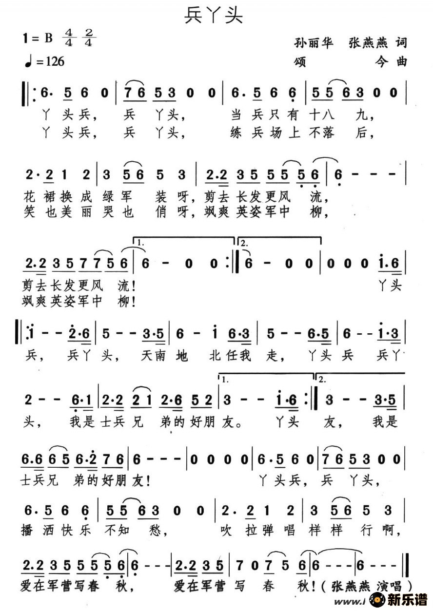 张燕燕演唱的兵丫头歌词,兵丫头最新曲谱.