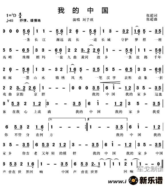 刘子琪演唱的我的中国歌词,我的中国最新曲谱.