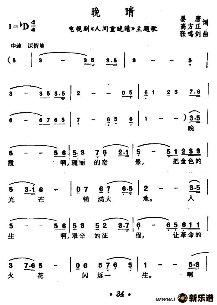 > 晚睛(电视剧《人间重晚晴》主题歌)最新曲谱