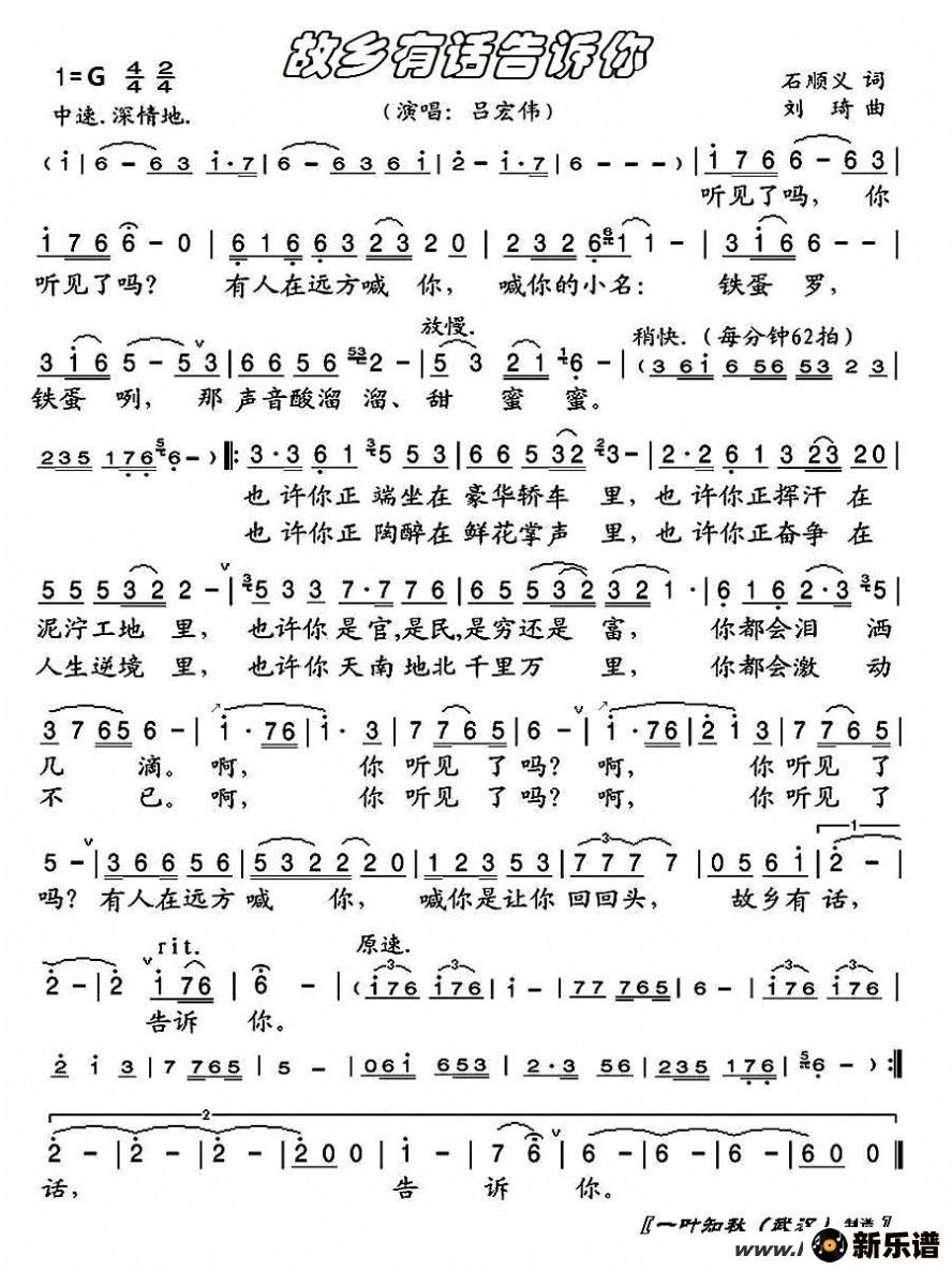 《故乡有话告诉你》最新曲谱 吕宏伟