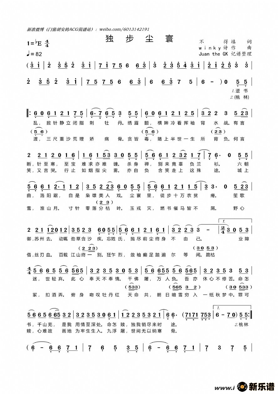 双笙演唱的独步尘寰歌词,独步尘寰最新曲谱.