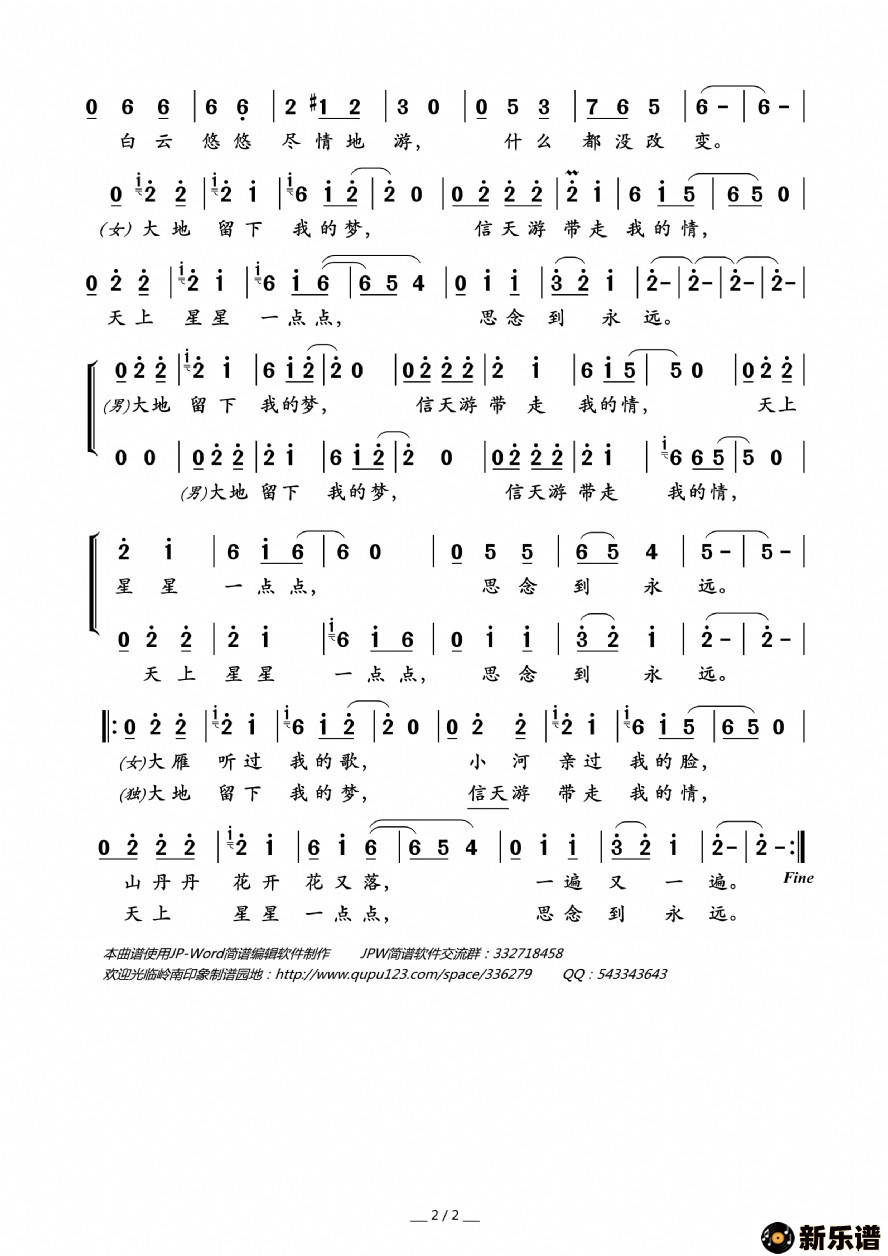 《信天游》最新曲谱 程琳-岭南印象制谱