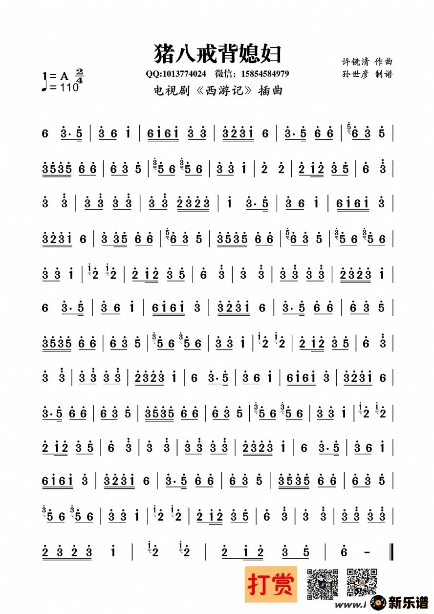 《猪八戒背媳妇(电视剧《西游记》插曲)》最新曲谱 -孙世彦制谱
