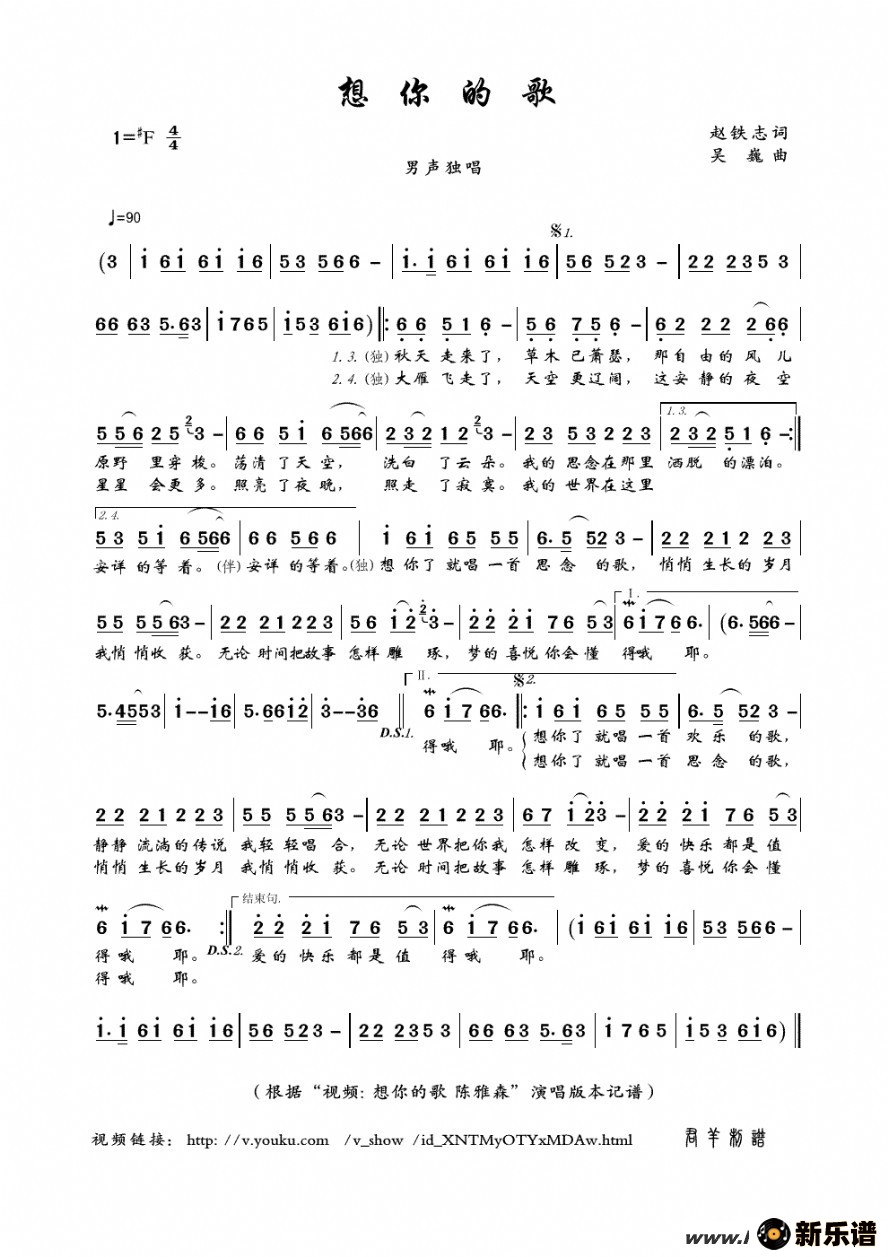 《想你的歌》最新曲谱 陈雅森-君羊制谱