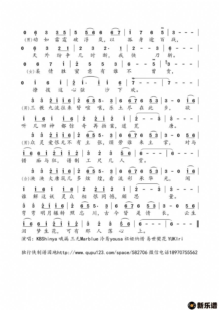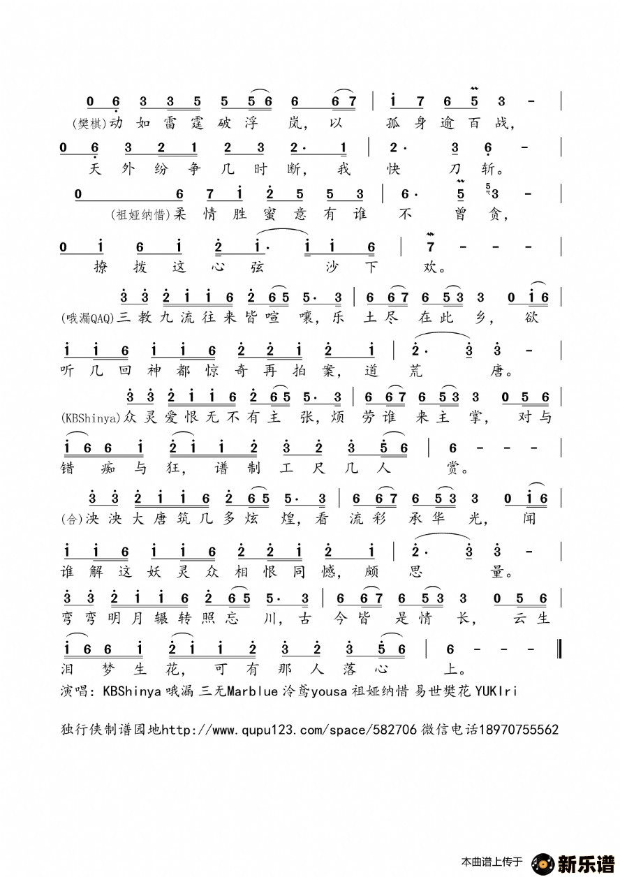 《妖谭》最新曲谱 天颜组合-独行侠制谱