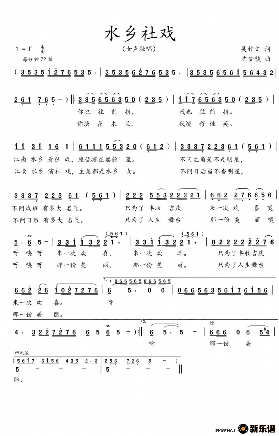 未知演唱的水乡社戏歌词,水乡社戏最新曲谱.