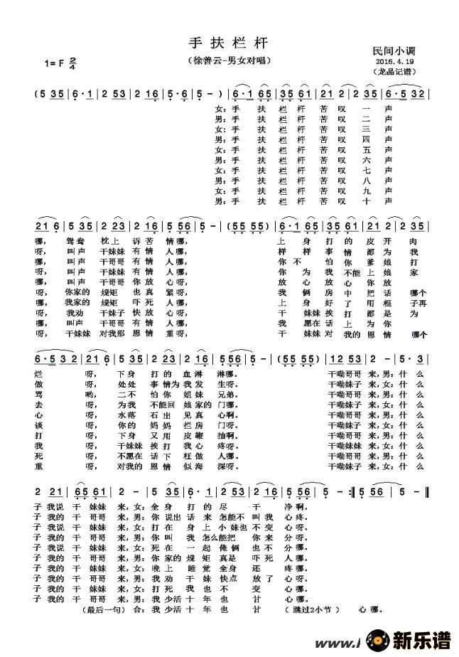 徐善云演唱的手扶栏杆 歌词,手扶栏杆 最新曲谱.