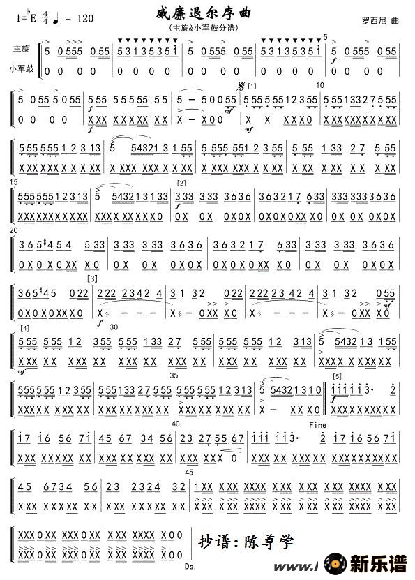 《威廉退尔序曲(主旋&小军鼓分谱)简》最新曲谱 中国人民解放军军乐团
