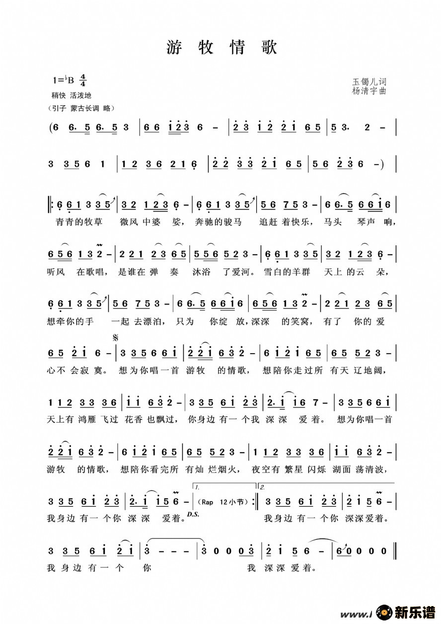 > 游牧情歌最新曲谱