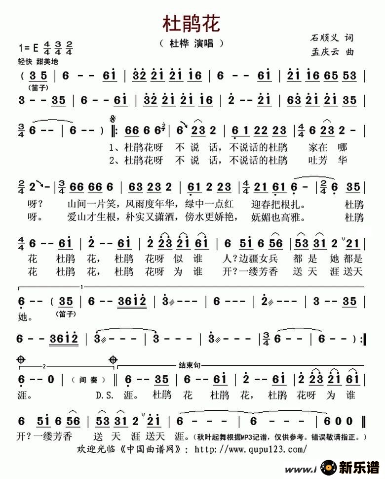 杜桦演唱的杜鹃花歌词,杜鹃花最新曲谱.