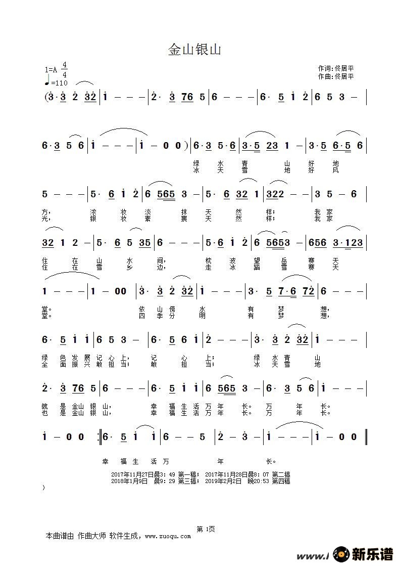佟居平演唱的金山银山歌词,金山银山最新曲谱.