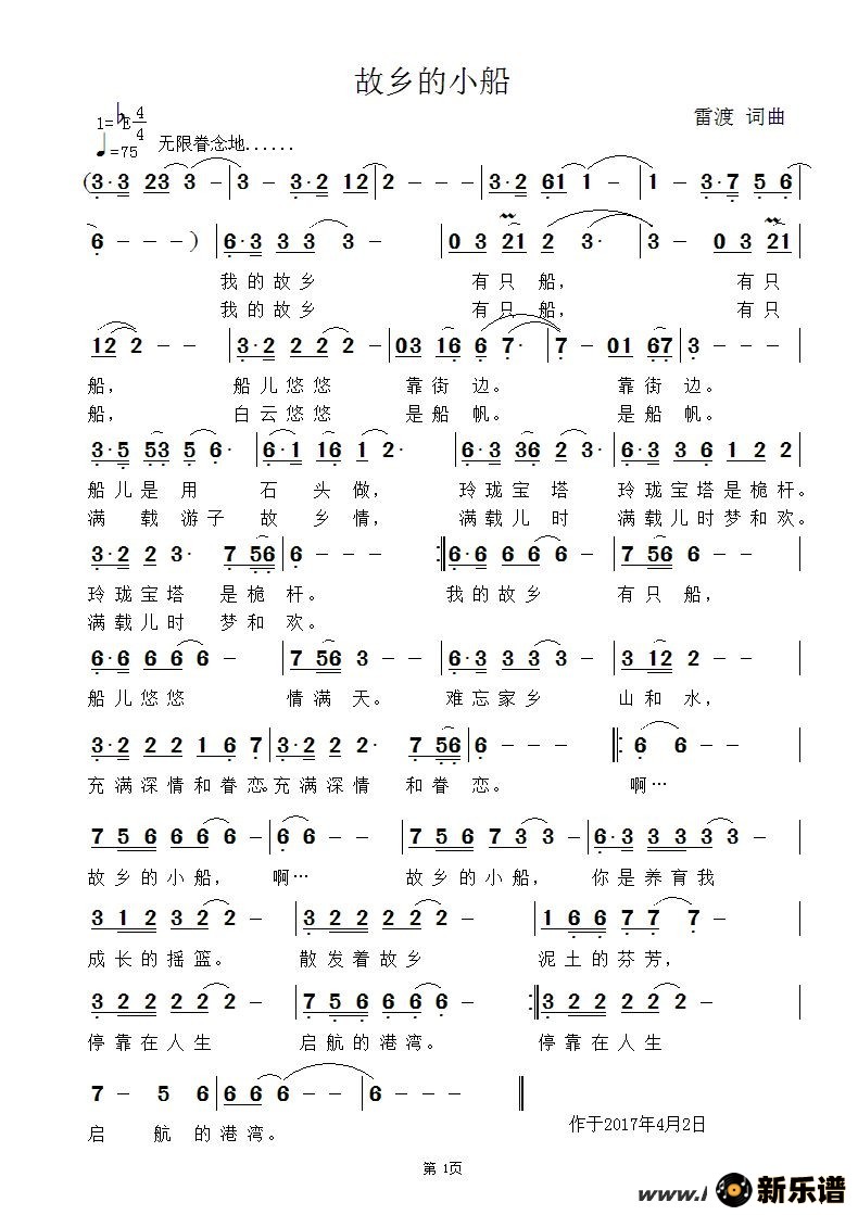 《故乡的小船》最新曲谱 李敏