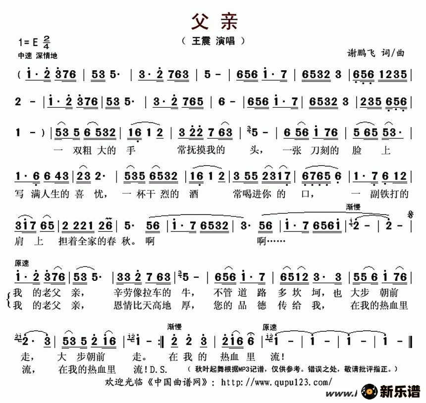 《父亲》最新曲谱 王震-秋叶起舞制谱